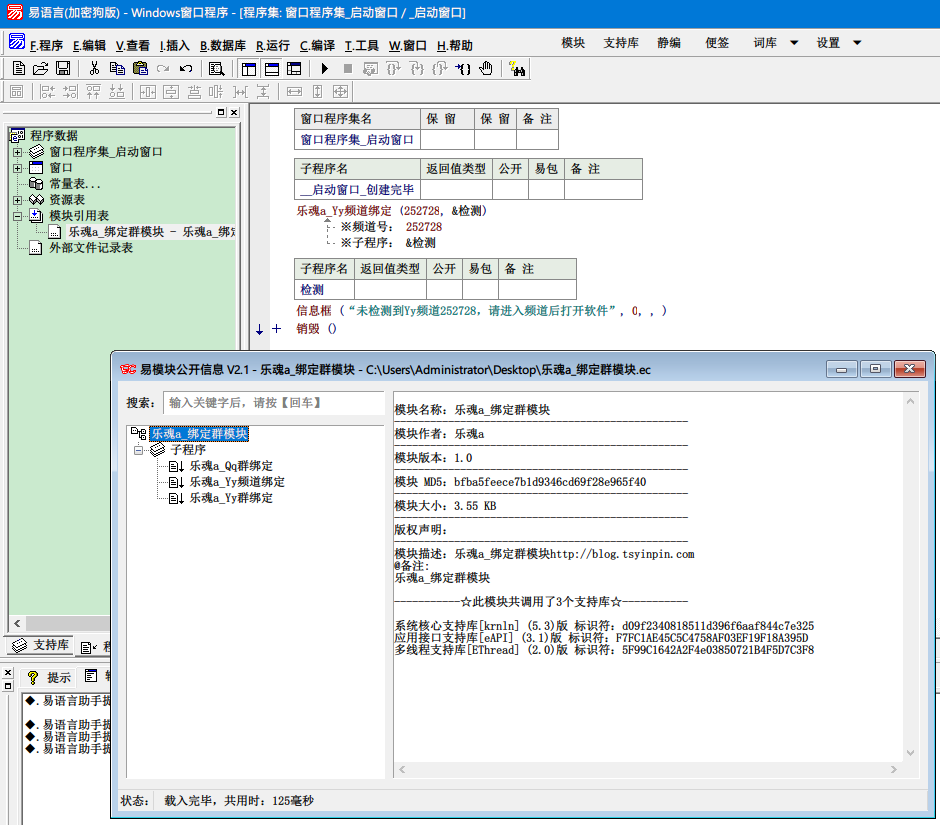 易语言绑定Qq群、Yy群、Yy频道模块 当前位置: Home » 未分类 » 易语言绑定Qq群、Yy群、Yy频道模块 不多说了这个,没什么可说的。绑定Qq群、Yy群、Yy频道的合集,使用例子看下面的图,模块都有注释链接:https://www.lanzoux.com/i0cfuvi